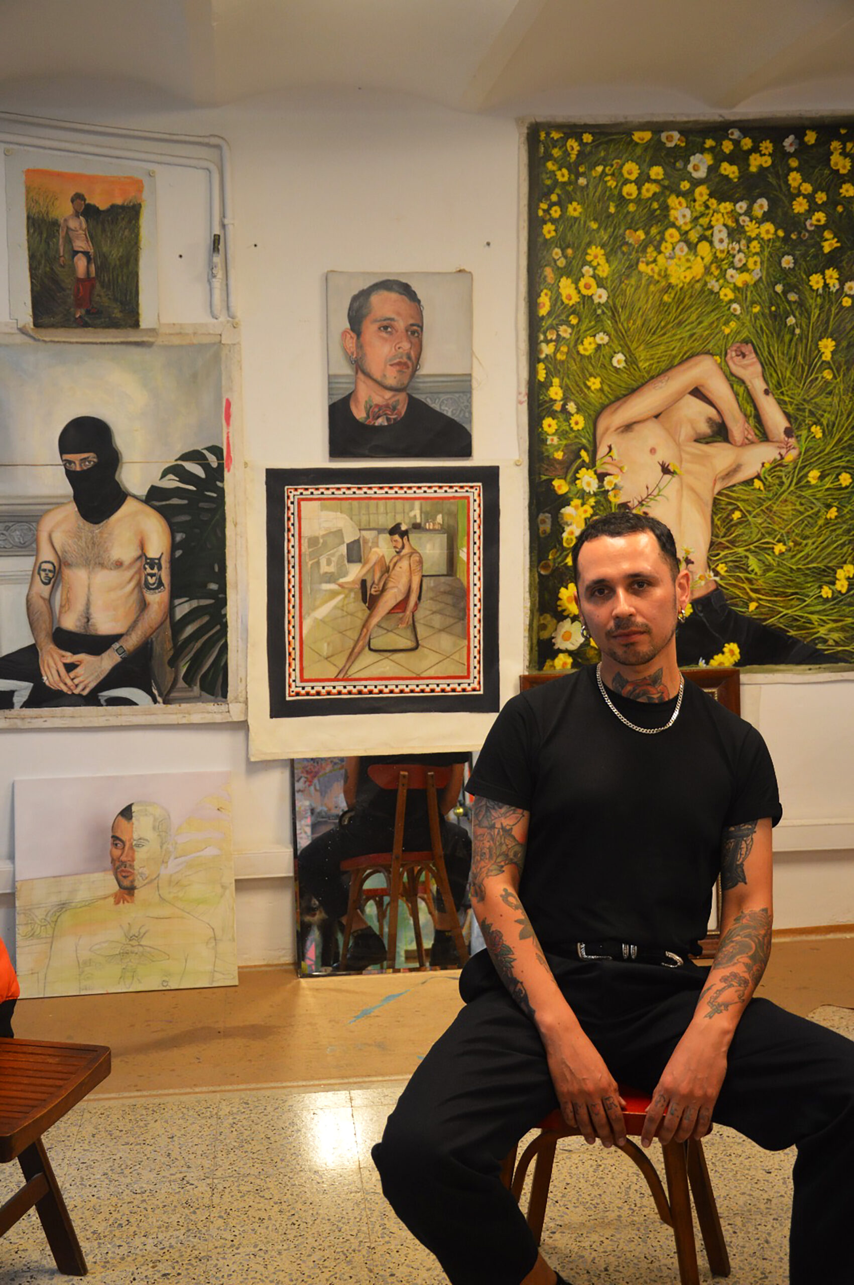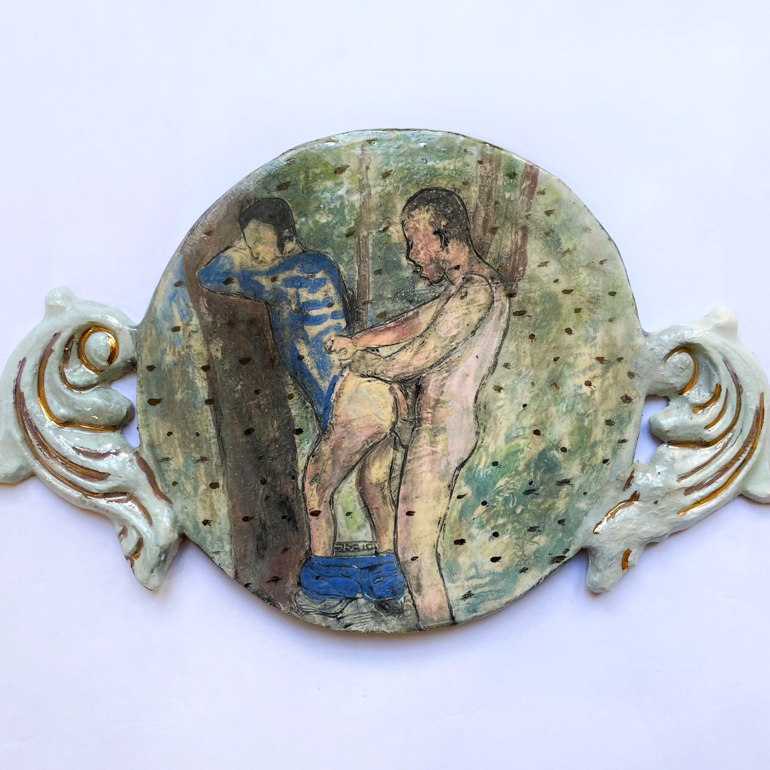 En sus obras más recientes, investiga los encuentros sexuales entre hombres a través del uso del óleo y la porcelana de alta temperatura, cuestionando las normativas sociales y afectivas impuestas, y explorando cómo estas condicionan los vínculos, el deseo y la intimidad en contextos específicos.
